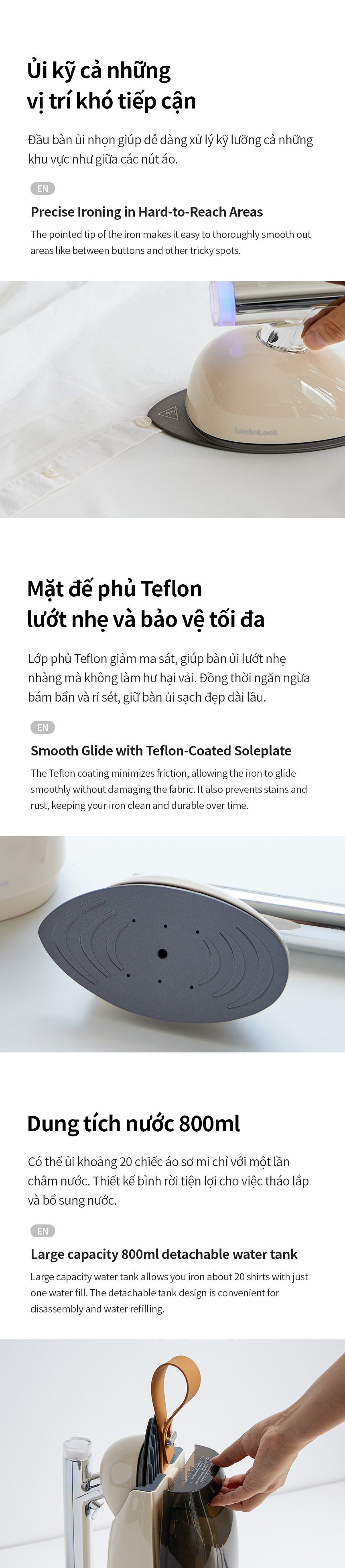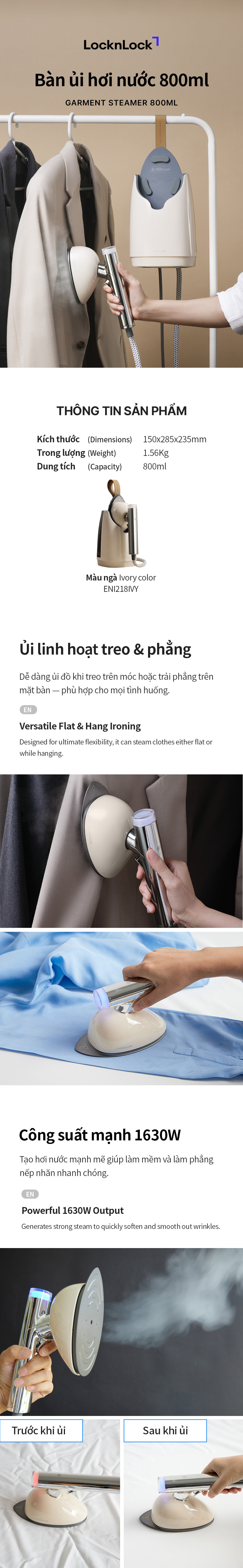 | Tên sản phẩm | Bàn ủi hơi nước LocknLock Garment steamer 800ml -ENI218IVY |
