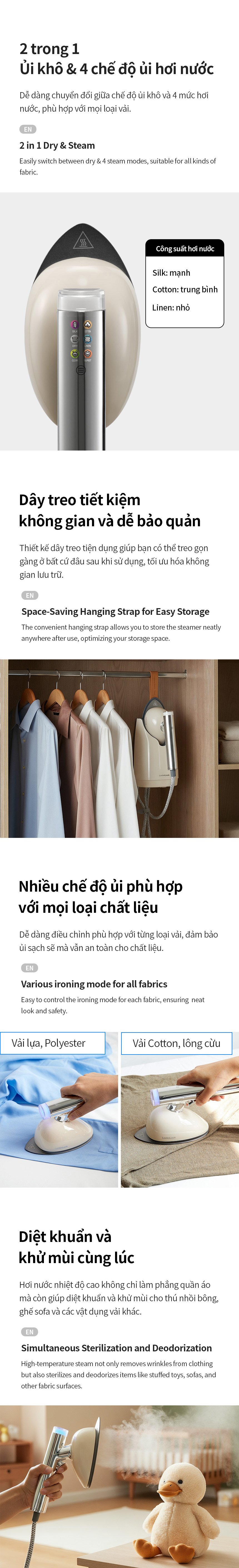 Dễ dàng ủi đồ khi treo trên móc hoặc trải phẳng trên mặt bàn — phù hợp cho mọi tình huống. - THIẾT KẾ ĐẦU NHỌN TINH TẾ