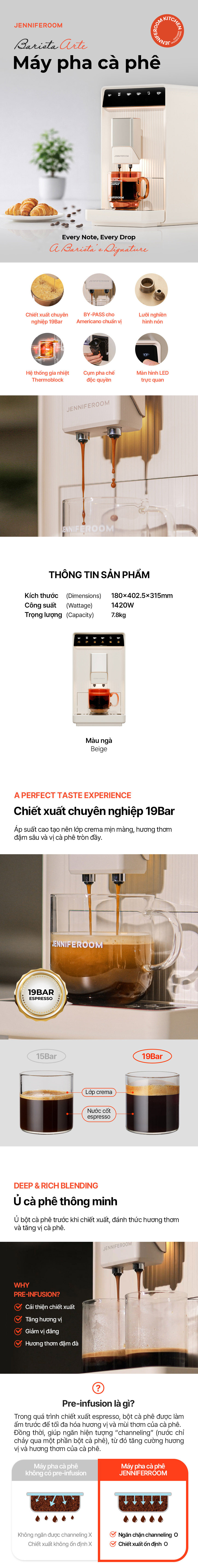 Jenniferoom 19-bar automatic espresso machine (with bypass) - JRK-EM19T1OM