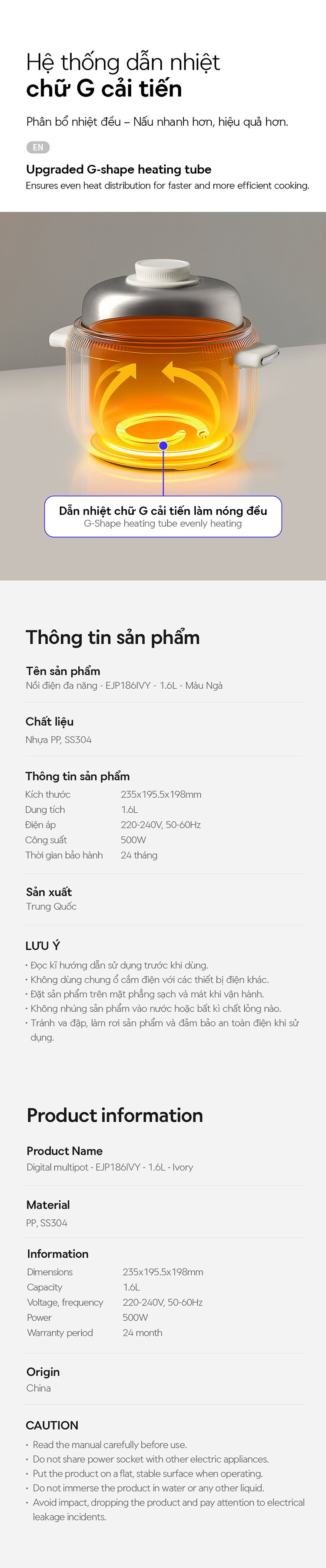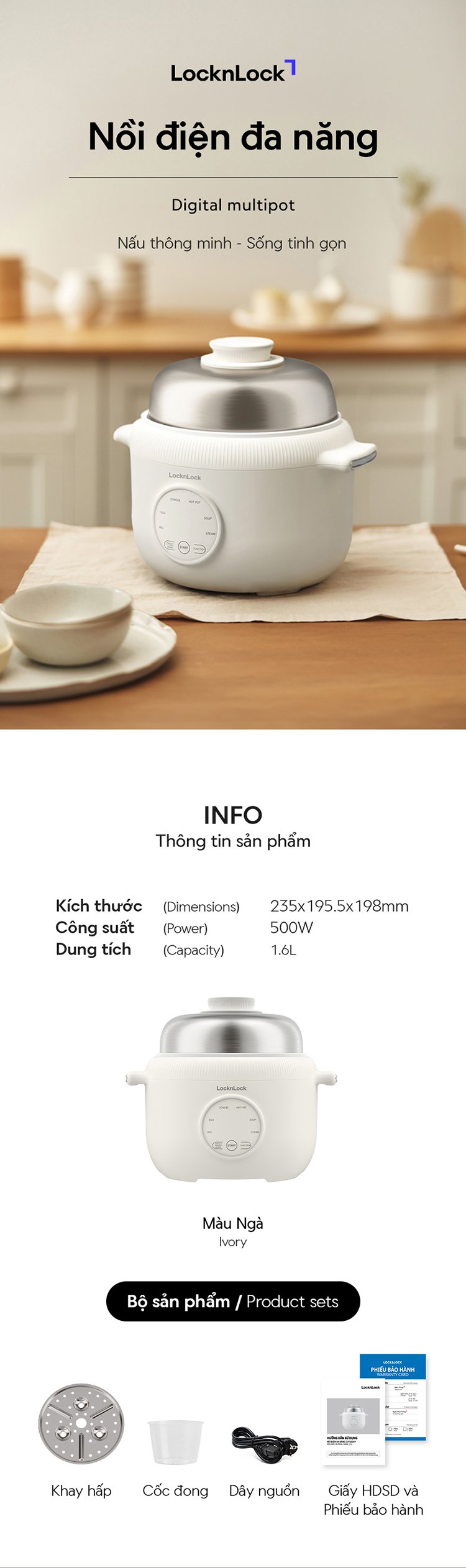 EJP186IVY – LocknLock Digital Multipot – 1.6L – Ivory Color