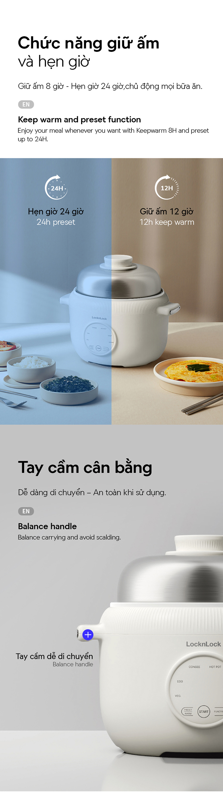 Keep-warm & timer functions: Keeps food warm for up to 8 hours – 24-hour timer for flexible meal planning