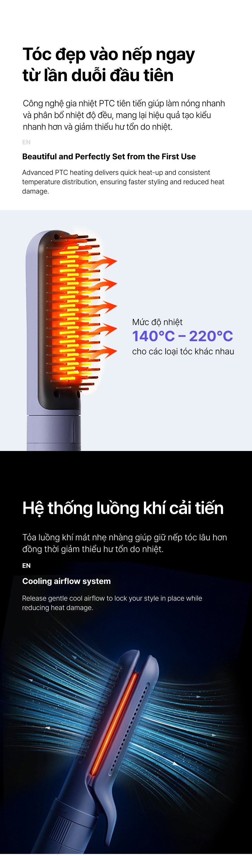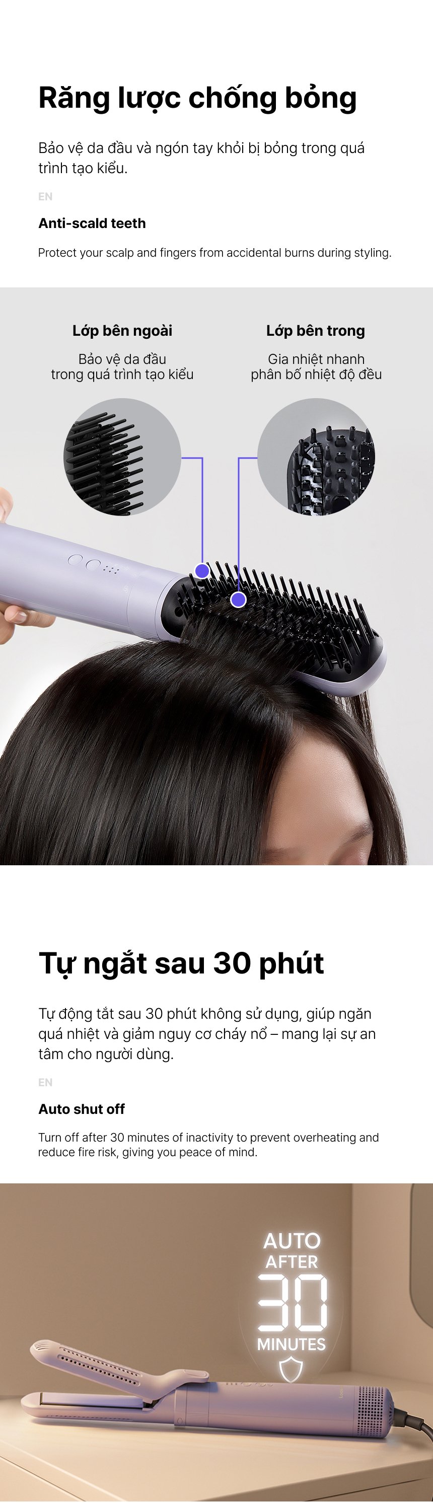 Anti-scald comb teeth: Protect scalp and fingers from burns.