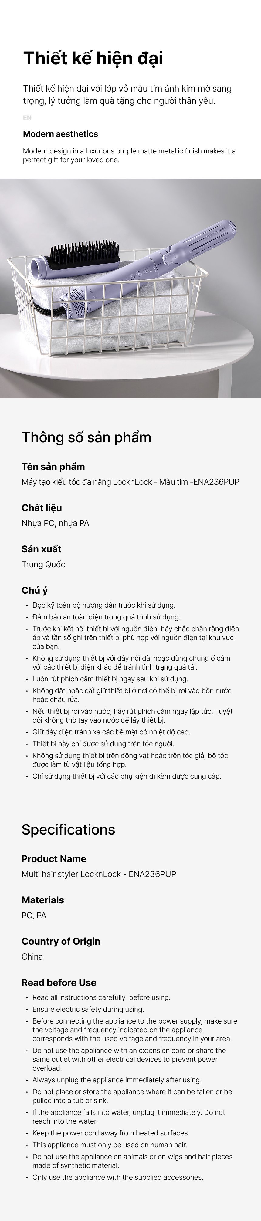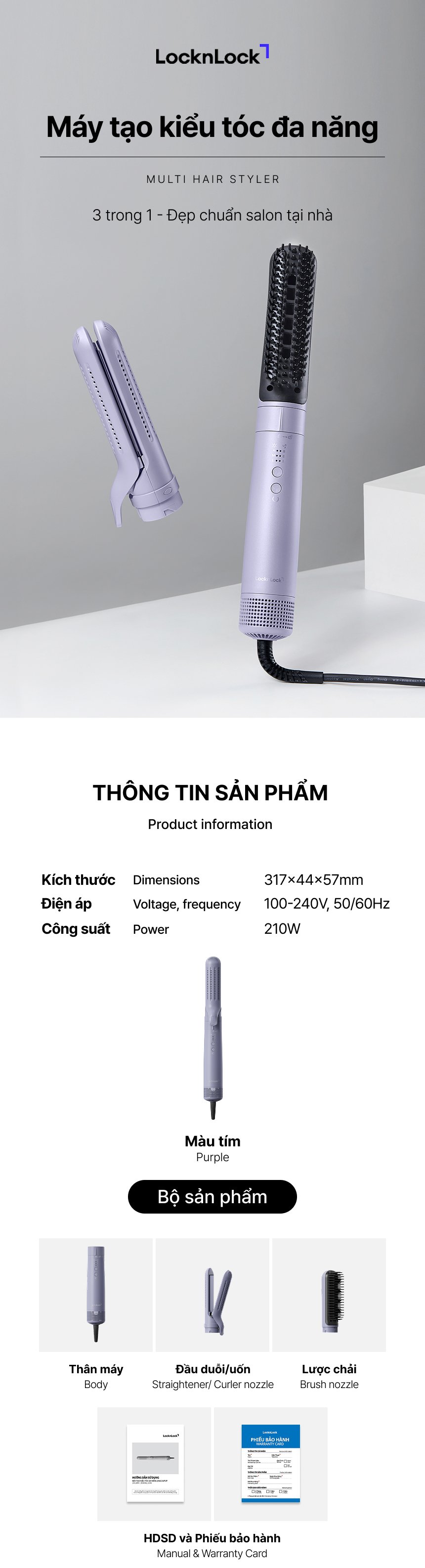 LocknLock Multi Hair Styler ENA236PUP – 3 Temperature Settings, 3-in-1 Design, PTC Technology