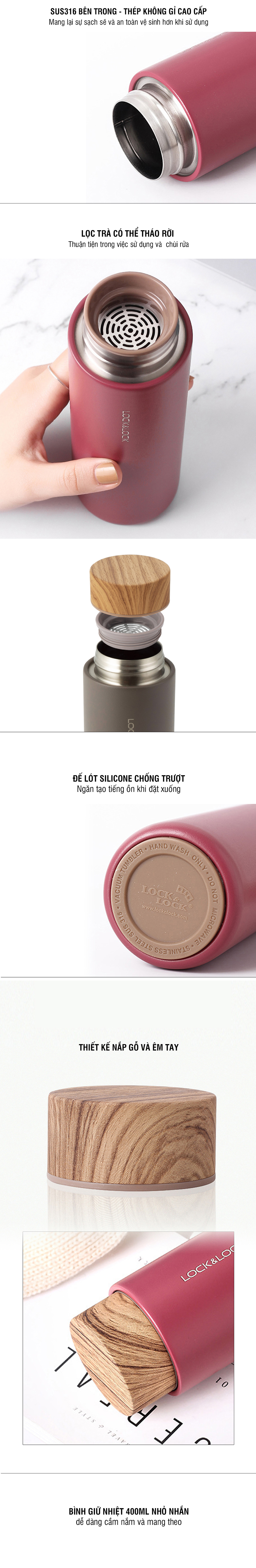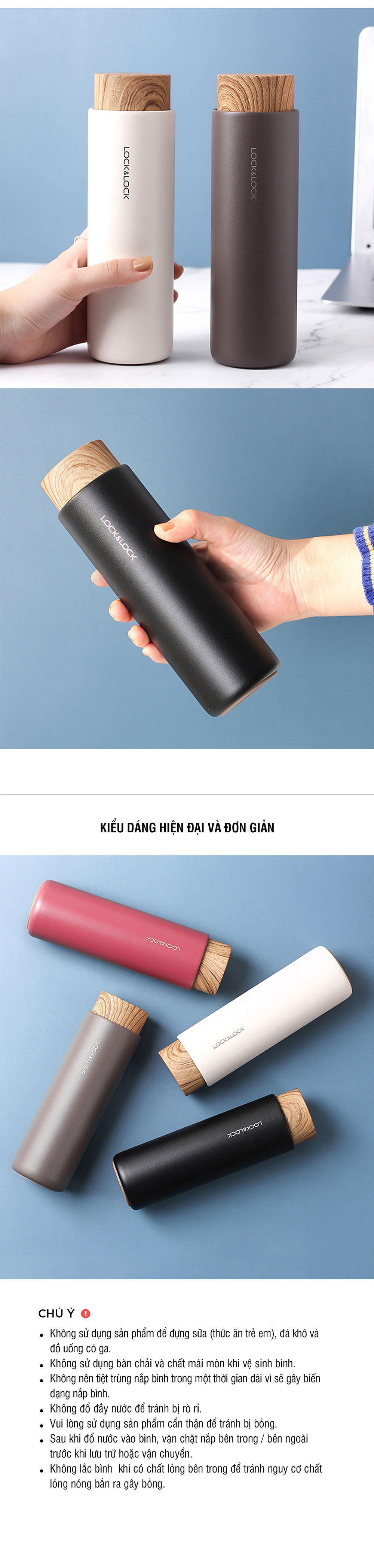 Bình Giữ Nhiệt LocknLock Flat Nắp Gỗ 400Ml - 3 Màu (Xám, Đen, Trắng) - LHC4227