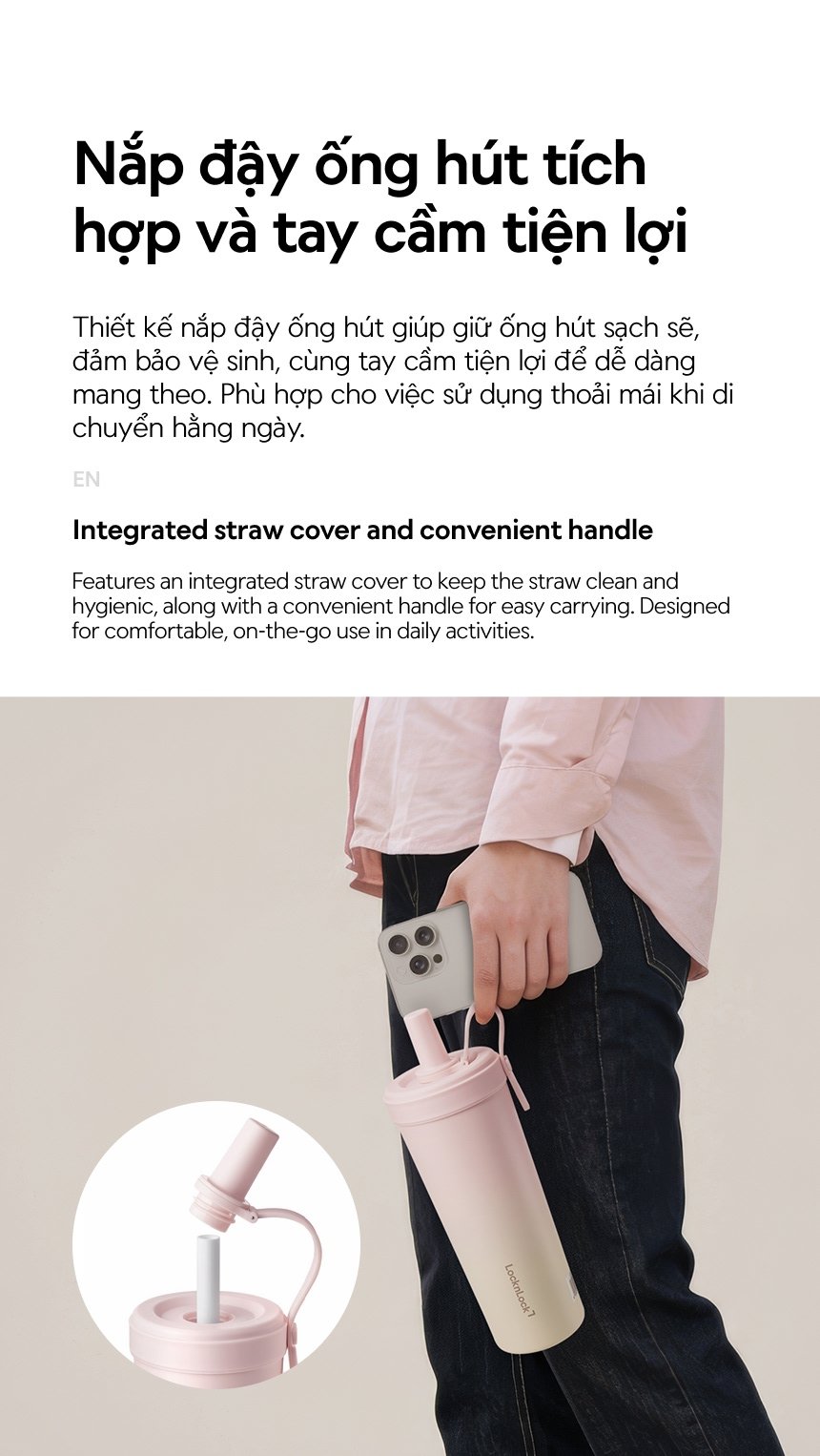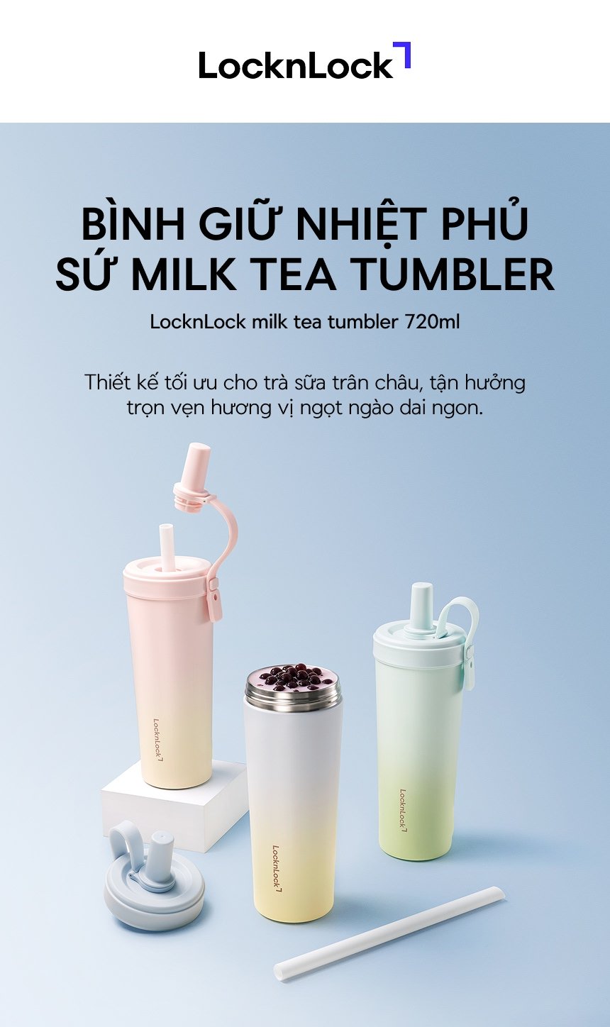 Bình giữ nhiệt phủ sứ LocknLock kèm ống hút trân châu dung tích 720ml - 3 Màu - LHC4369