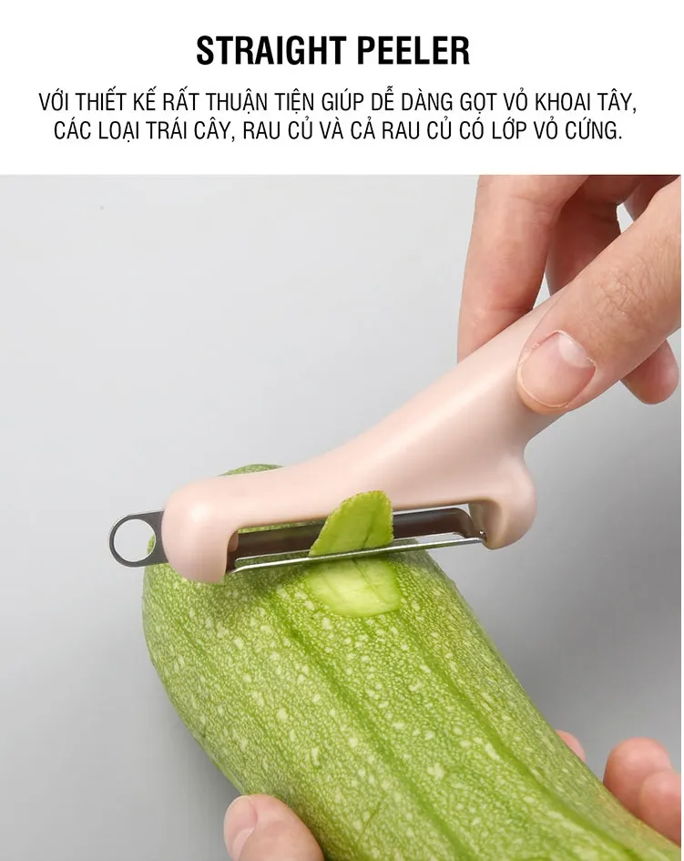 - Dao bào củ quả Straight Peeler với thiết kế rất thuận tiện giúp dễ dàng gọt vỏ khoai tây, các loại trái cây, rau củ và cả rau củ có lớp vỏ cứng