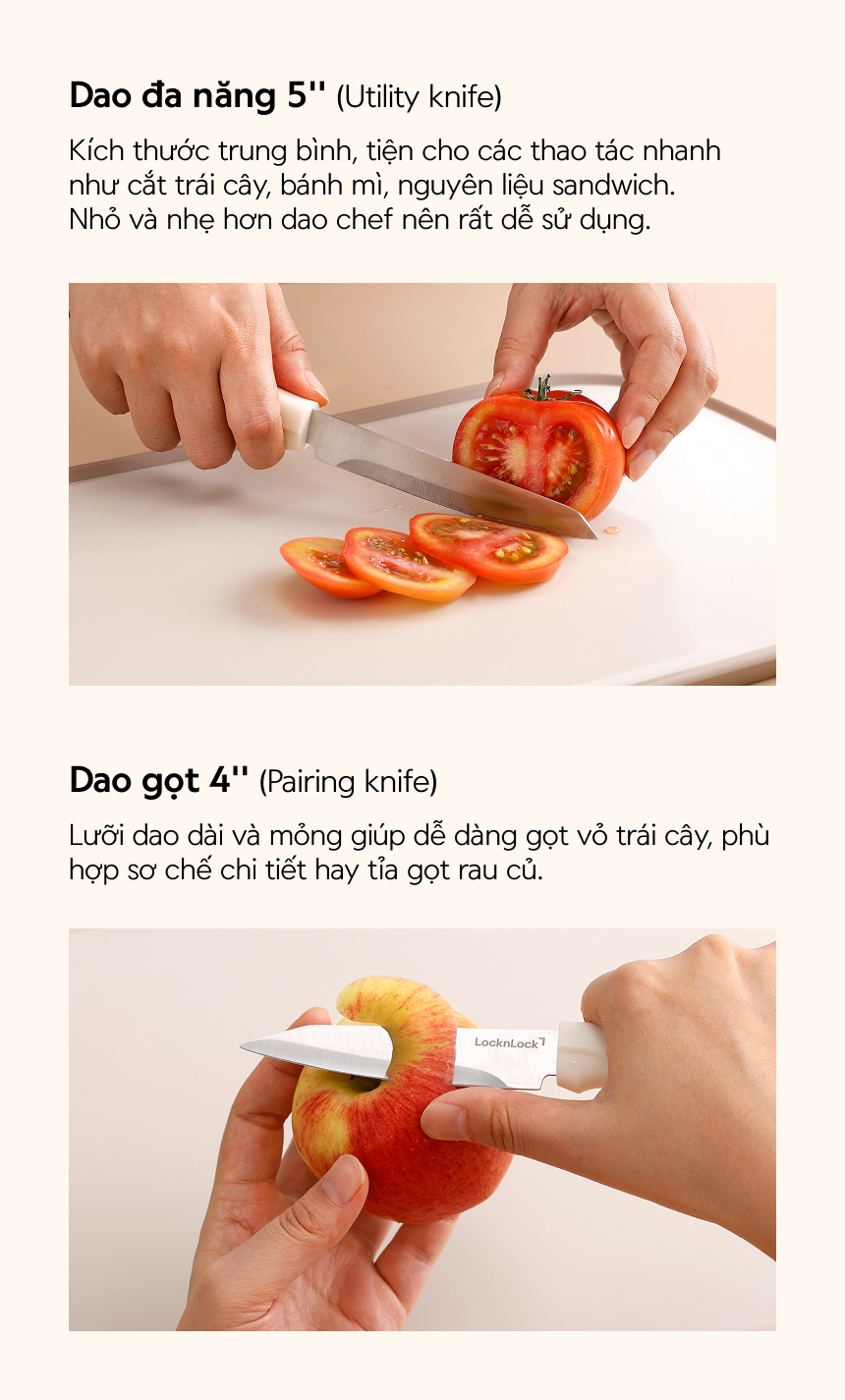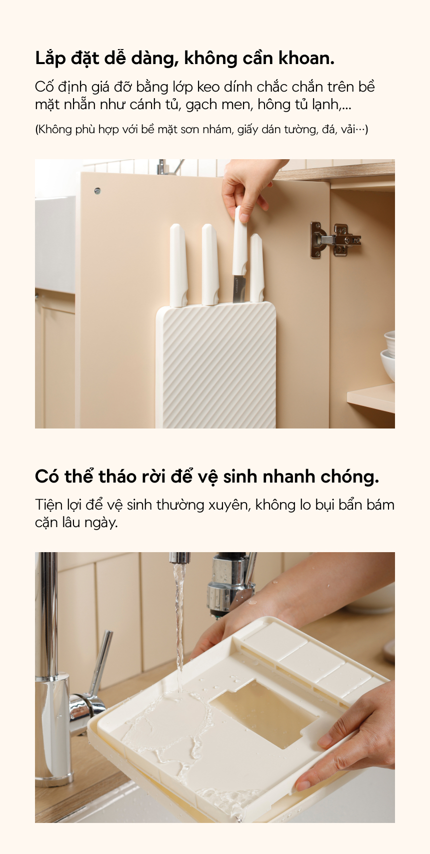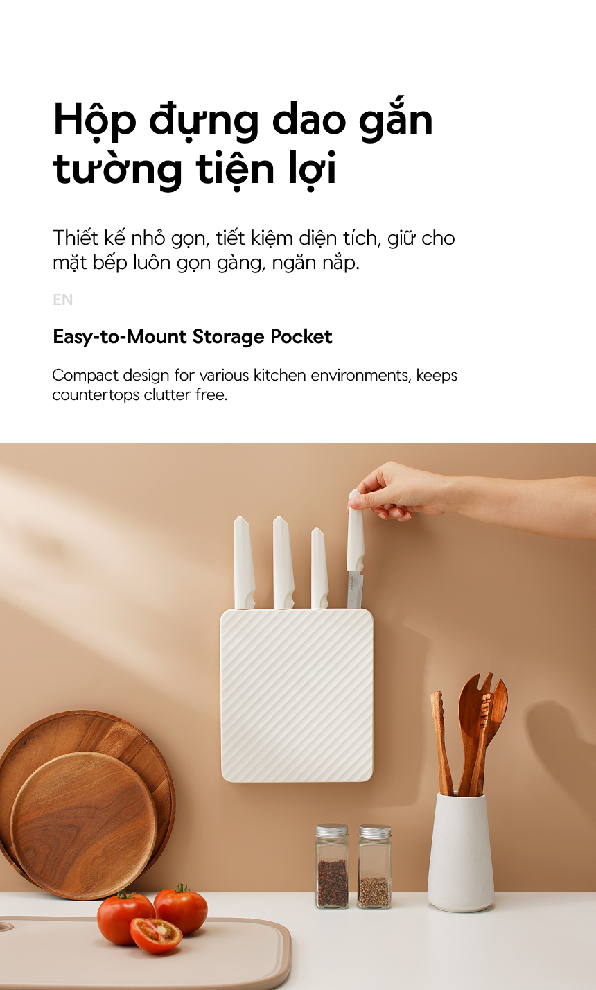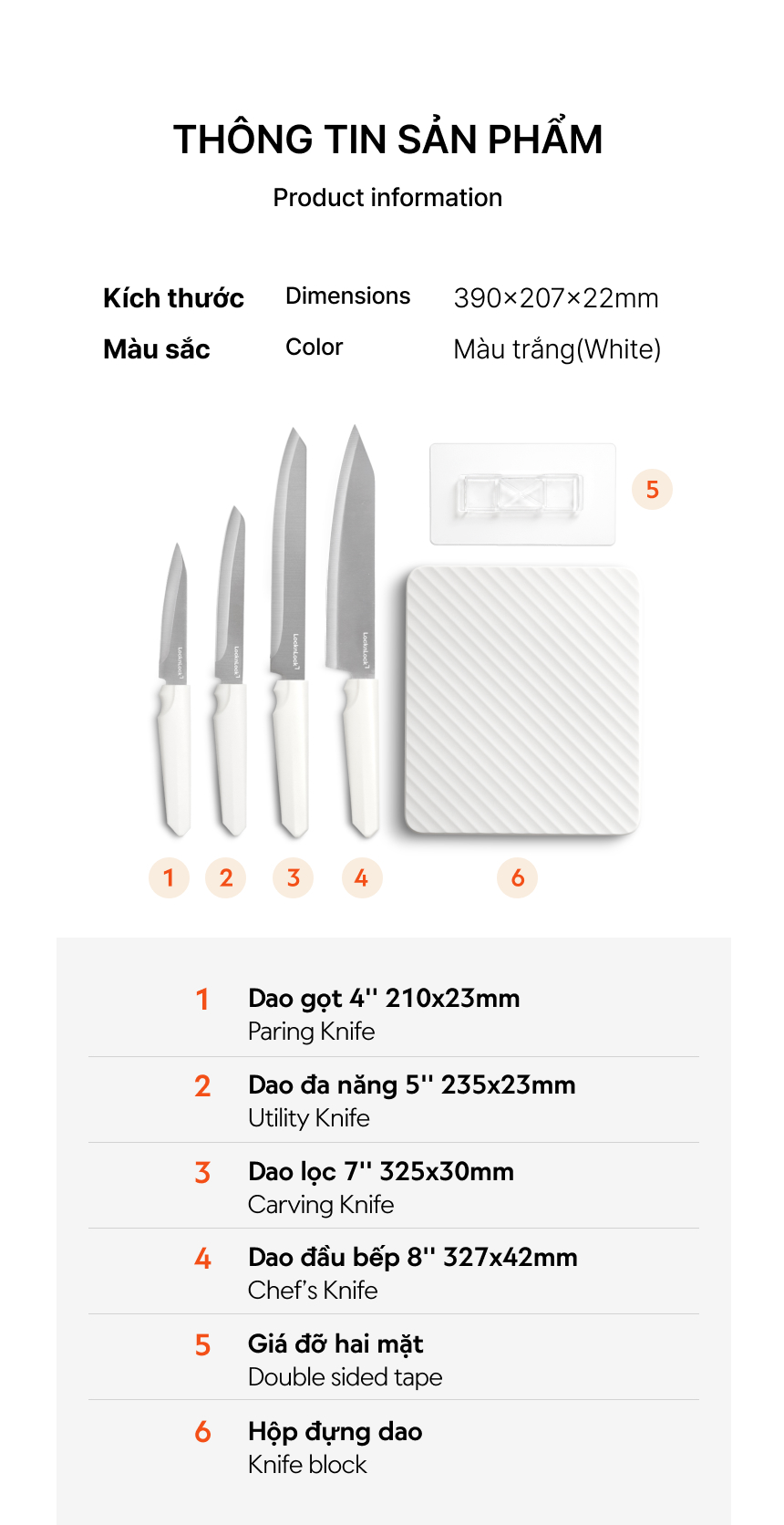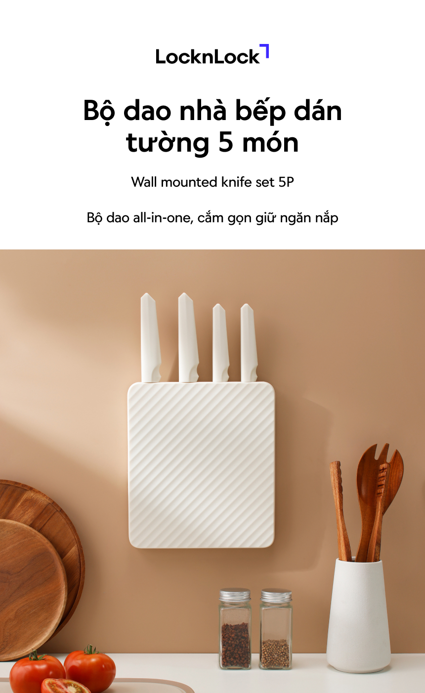Bộ dao 5 món LocknLock gồm 4 dao, 1 khối đỡ dao dán tường bằng PP - Màu Ivory - CKK307S5