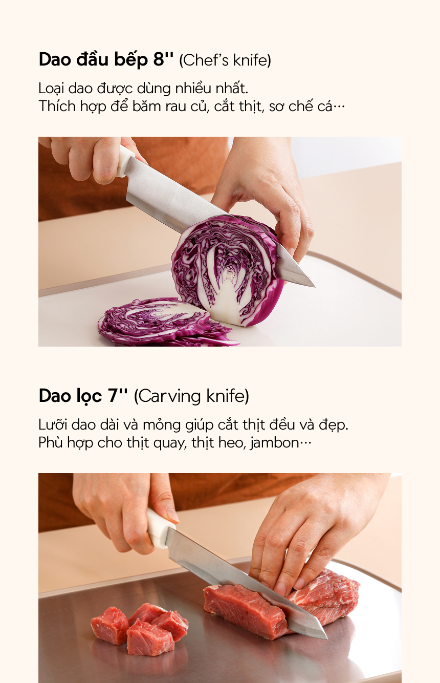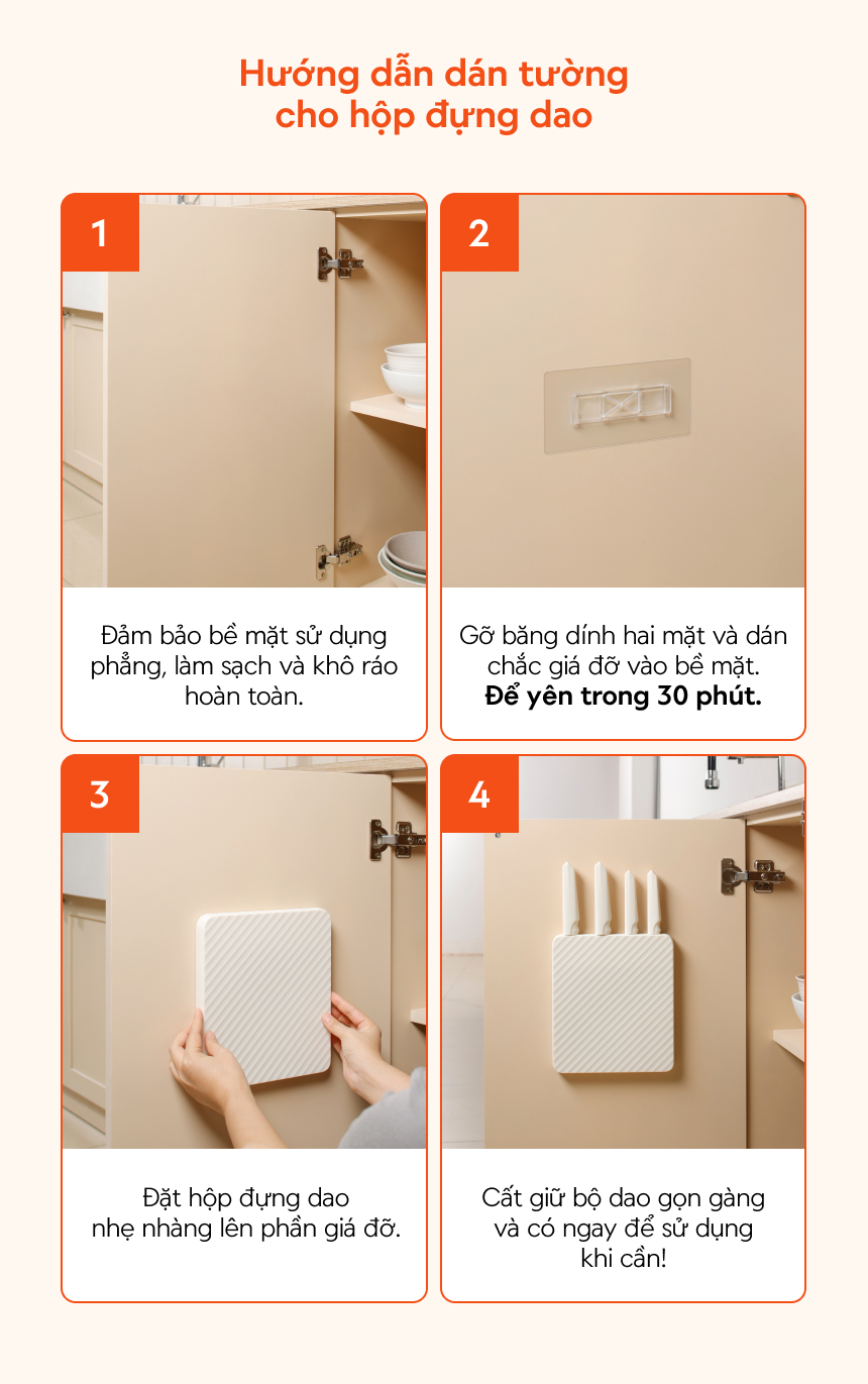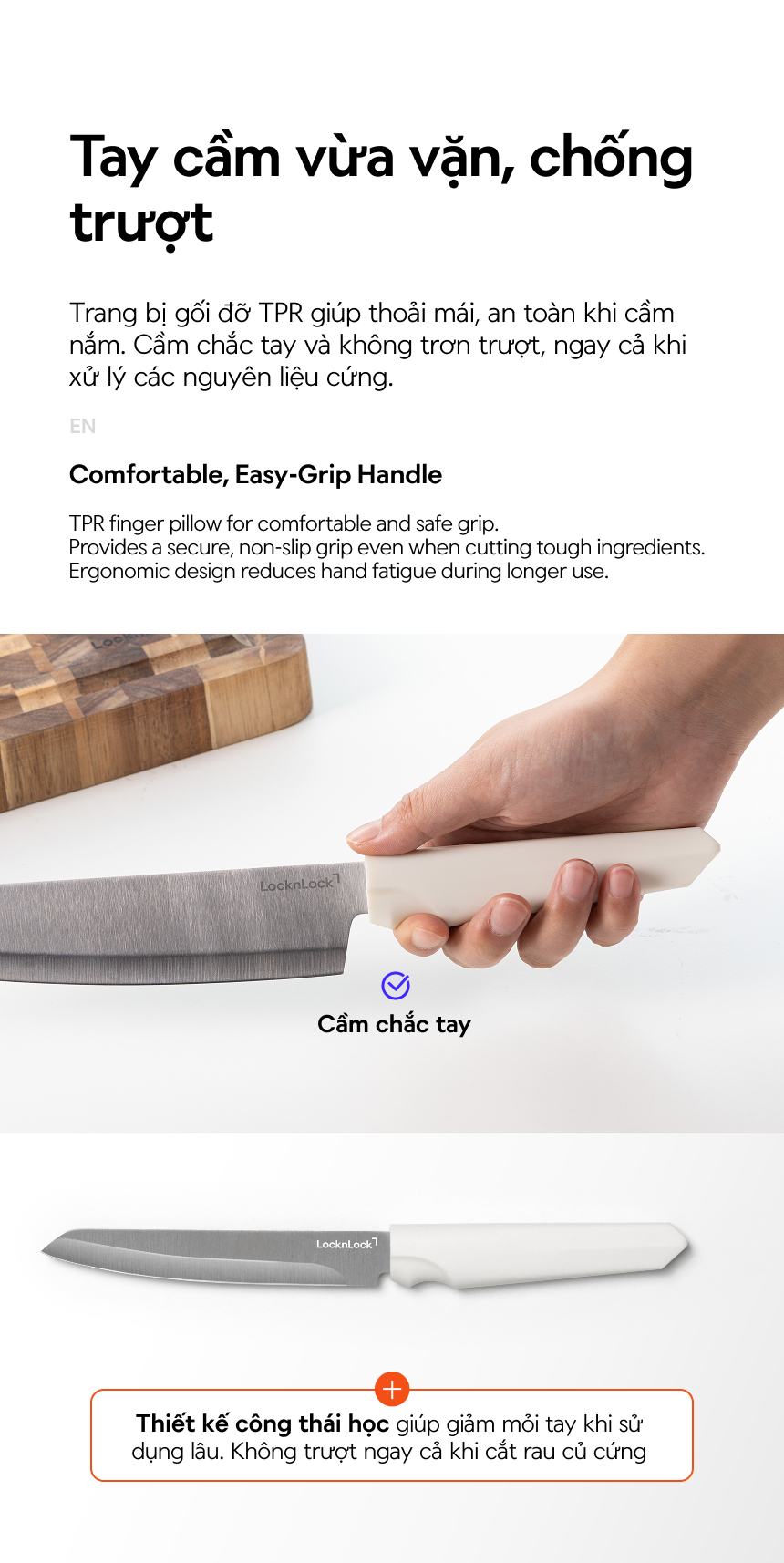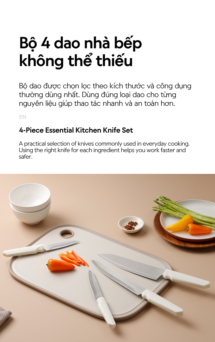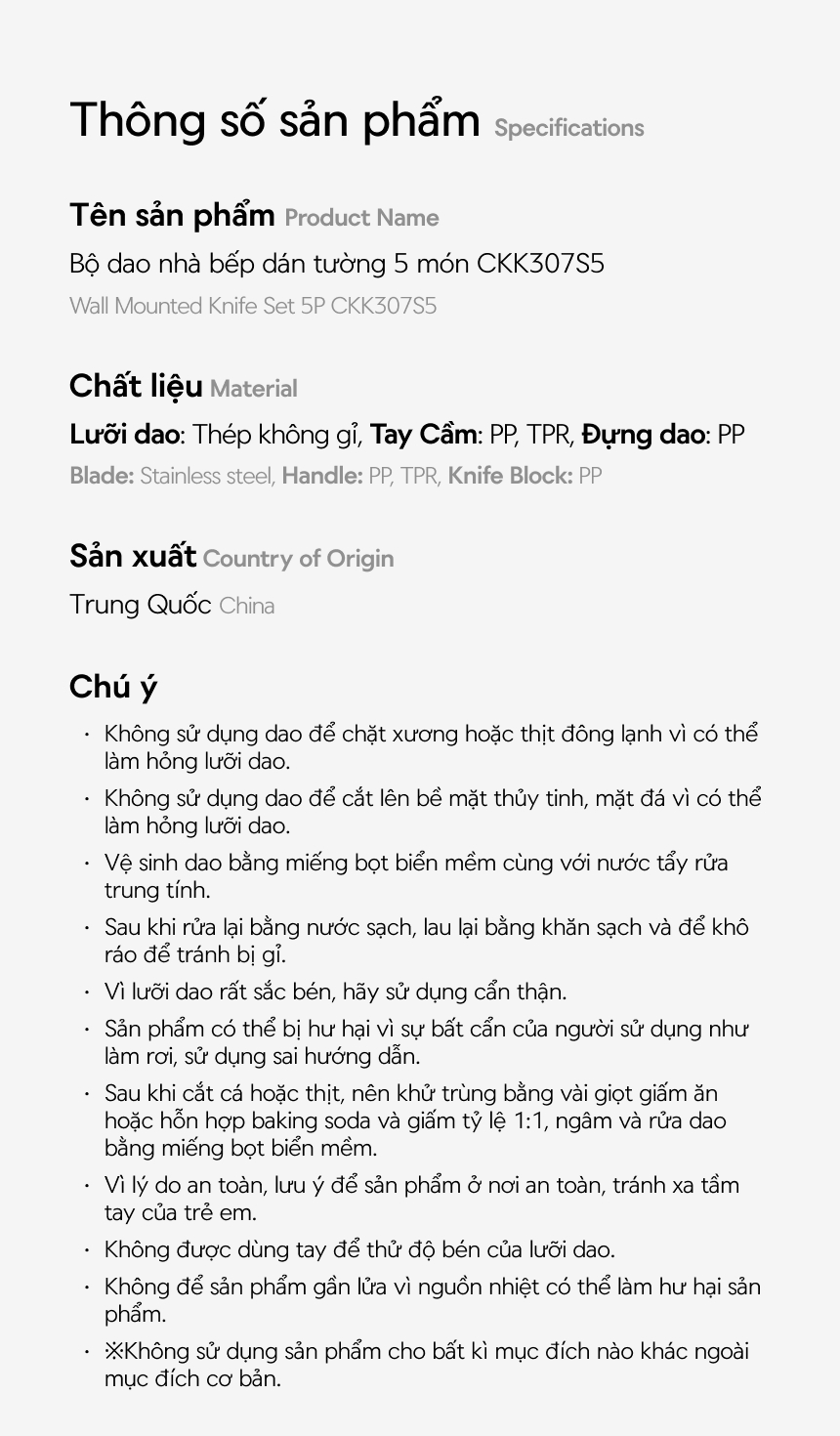 Bộ dao 5 món LocknLock gồm 4 dao, 1 khối đỡ dao dán tường bằng PP - Màu Ivory - CKK307S5