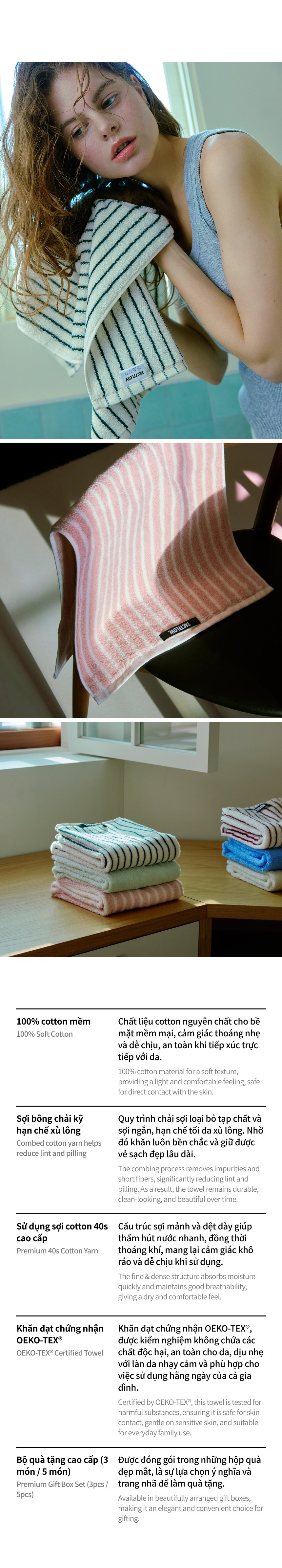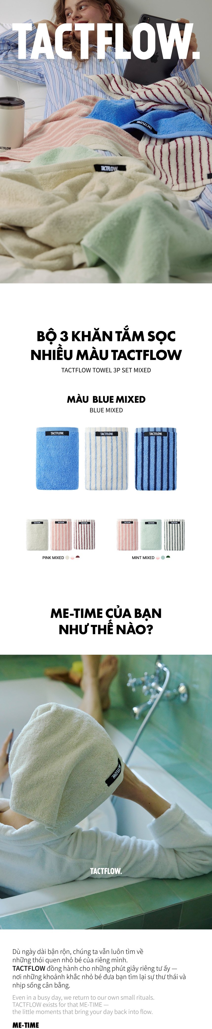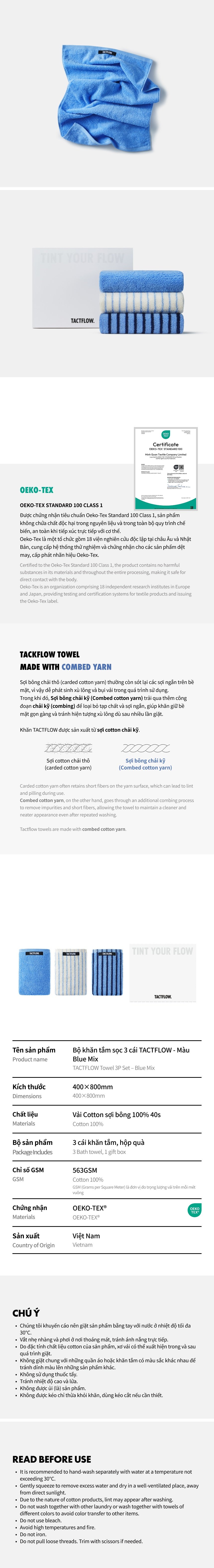Bộ khăn TACTFLOW 3 chiếc – Phối màu – TFH109BLUEMIXED