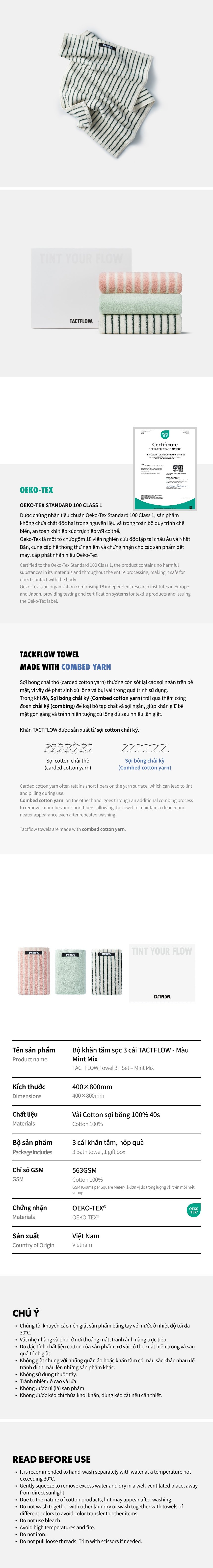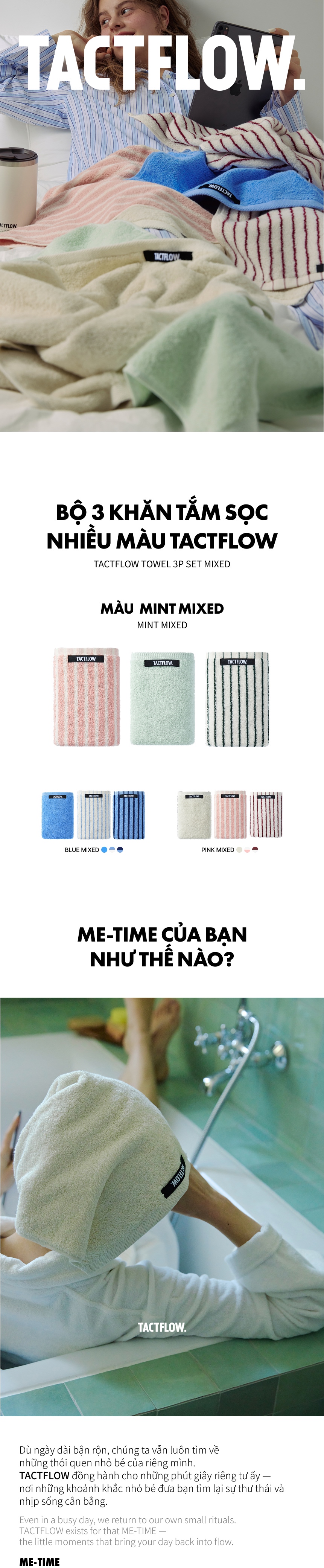 Bộ khăn TACTFLOW 3 chiếc – Phối màu – TFH111MINTMIXED
