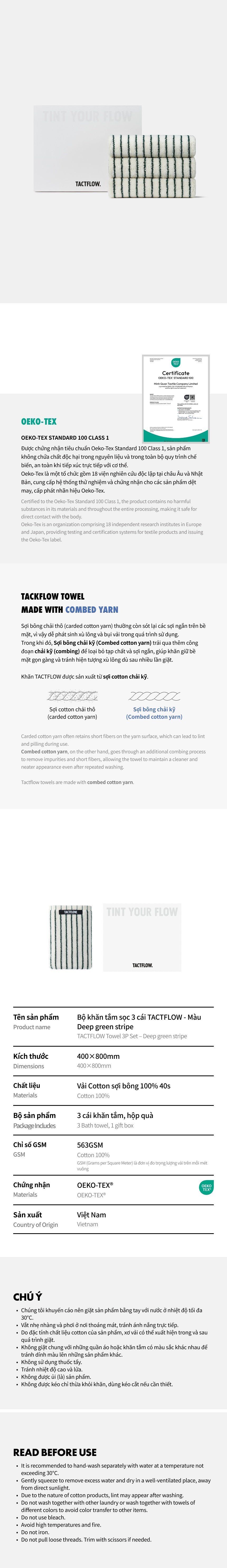 Bộ khăn TACTFLOW 3 chiếc – Sọc xanh lá đậm – TFH105DEEPGREENST