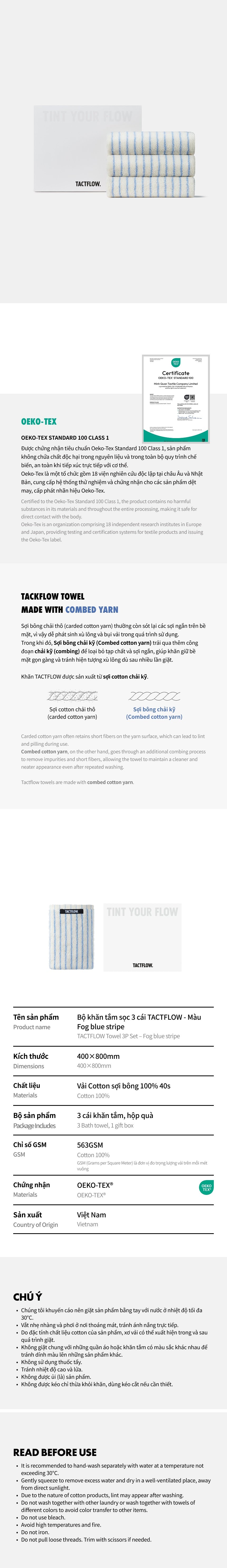 Bộ khăn TACTFLOW 3 chiếc – Sọc xanh sương – TFH104FOGBLUEST