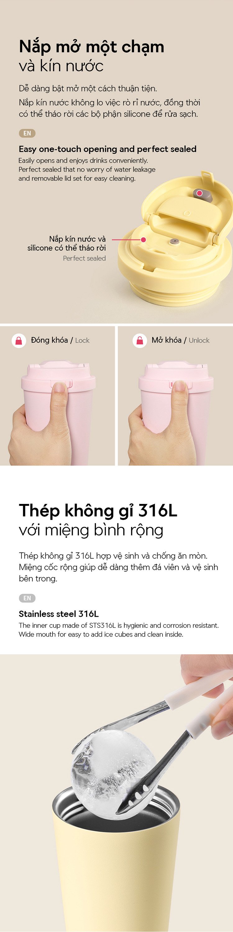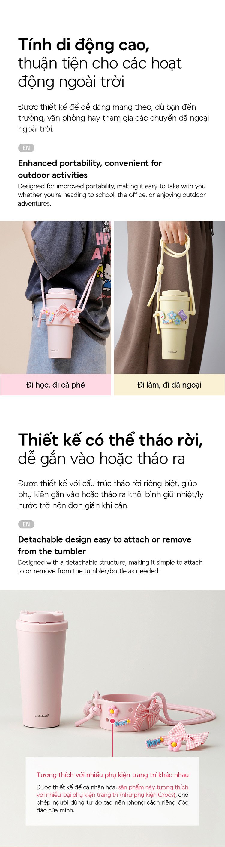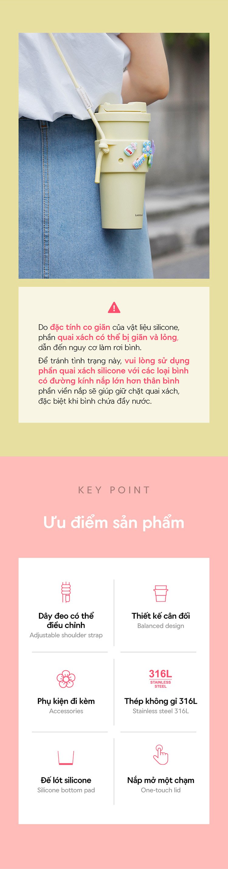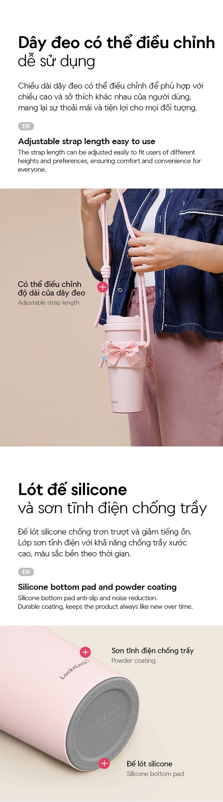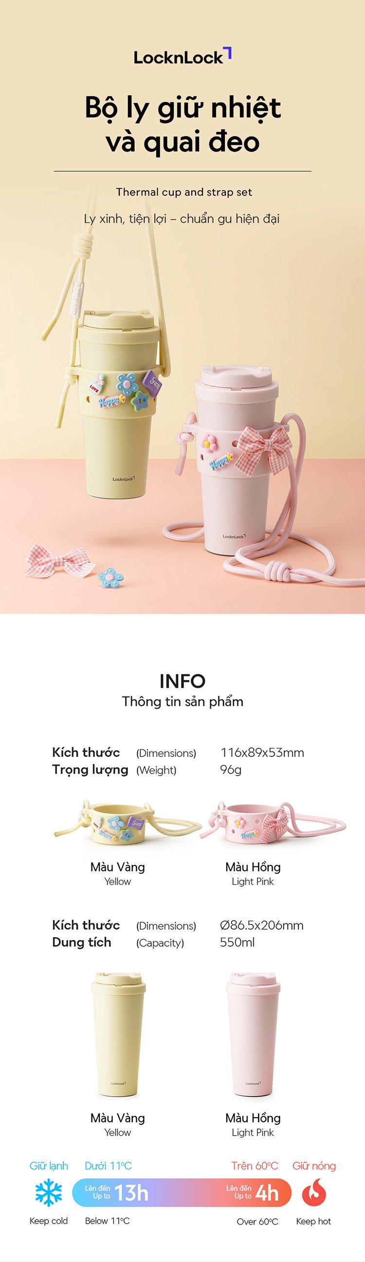 Combo Ly giữ nhiệt & Quai đeo silicone LocknLock Energetic 550ml - 2 Màu (Vàng, Hồng Nhạt) - LHC3249S01