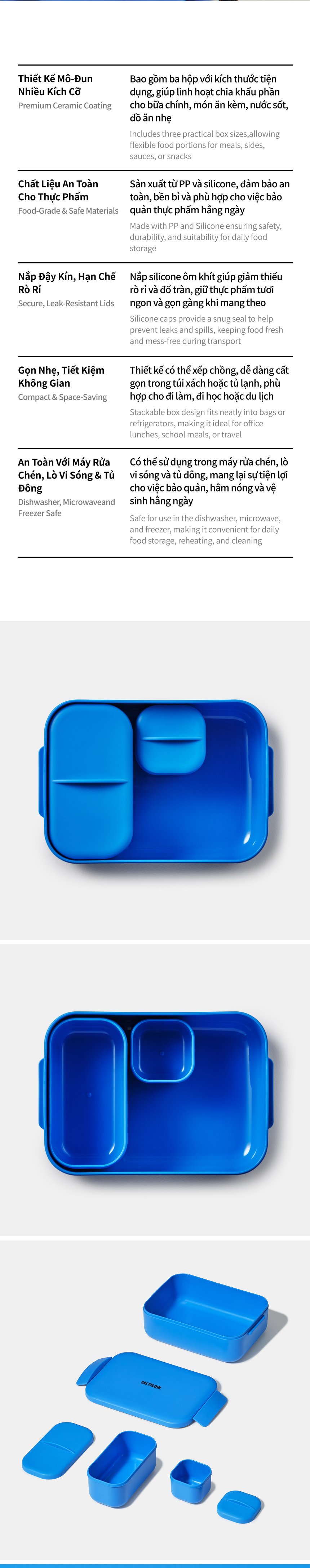 Hộp cơm chữ nhật TACTFLOW – 1.2L – Xanh dương – TFK450BLU
