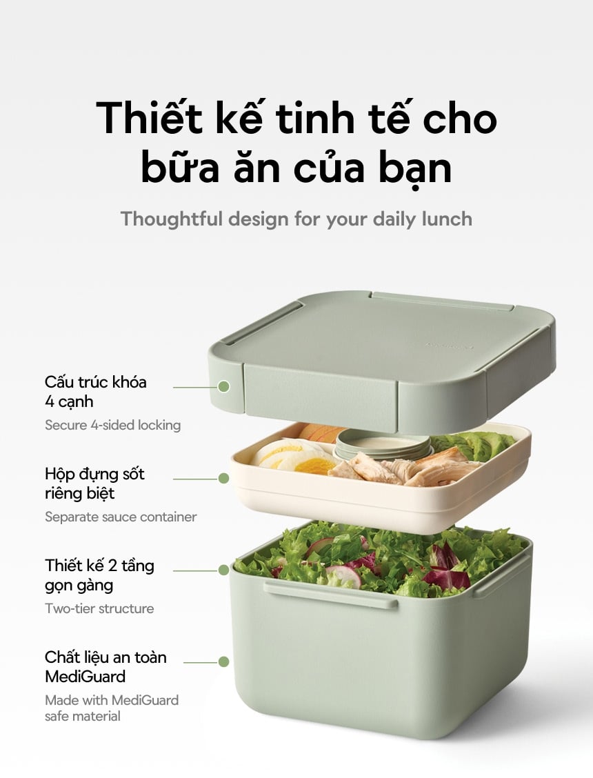 Hộp Salad To-Go LocknLock 1.3L Nhựa PP Màu Xanh Mint - LCB412