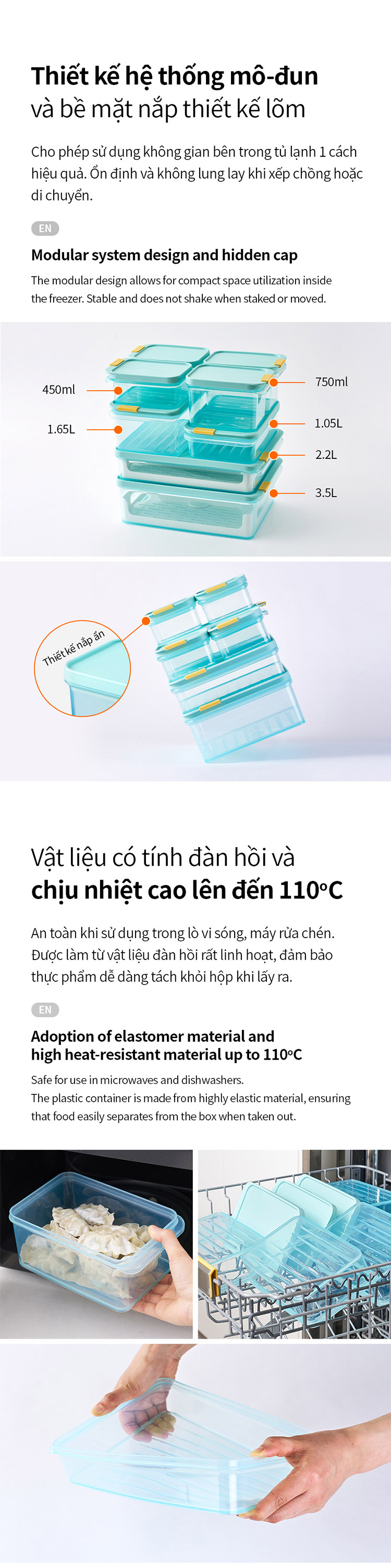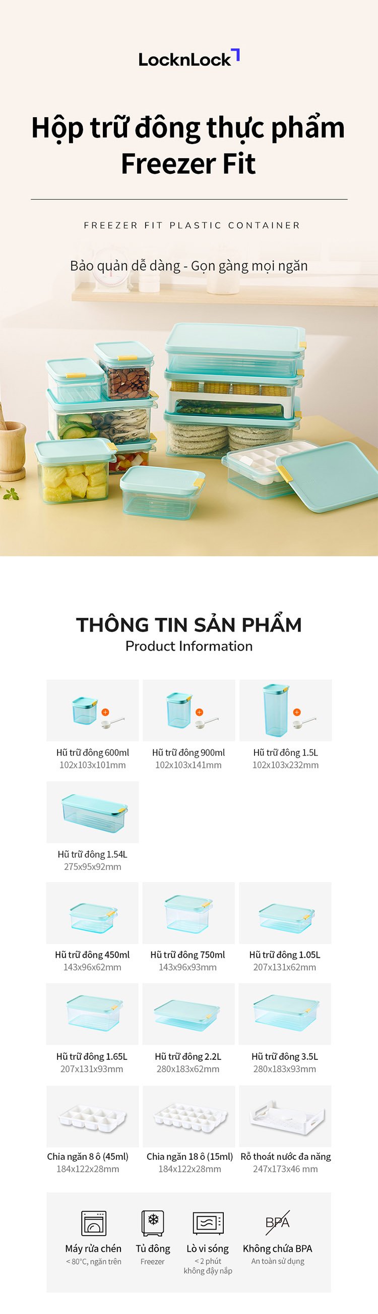 Hộp Trữ Đông Freezer Fit LocknLock 1.65L - Kèm Khuôn Chia Nhỏ Thực Phẩm 18 Ngăn - HFL104D18