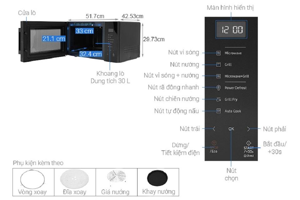 Kích thước lò vi sóng LocknLock 30l
