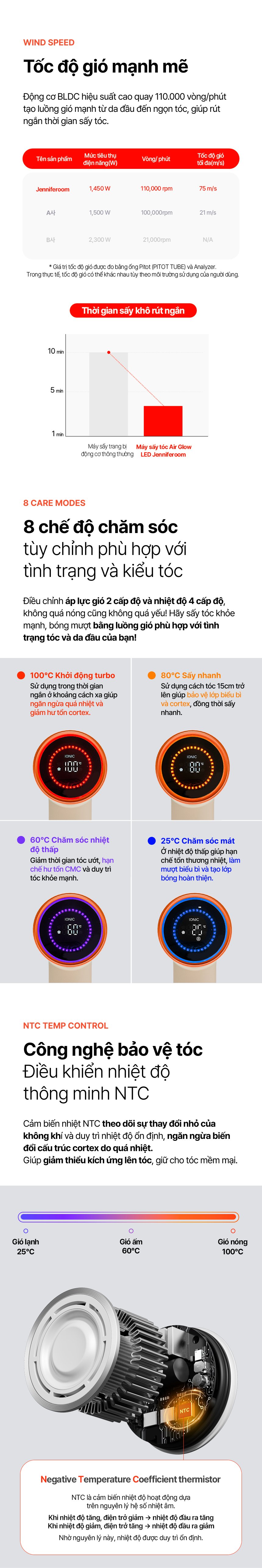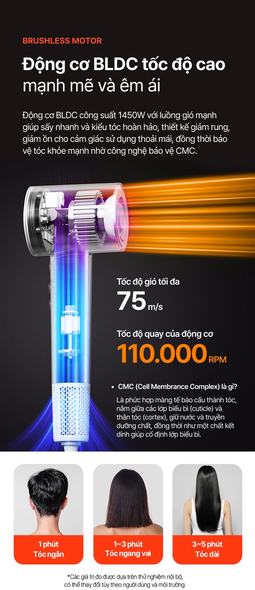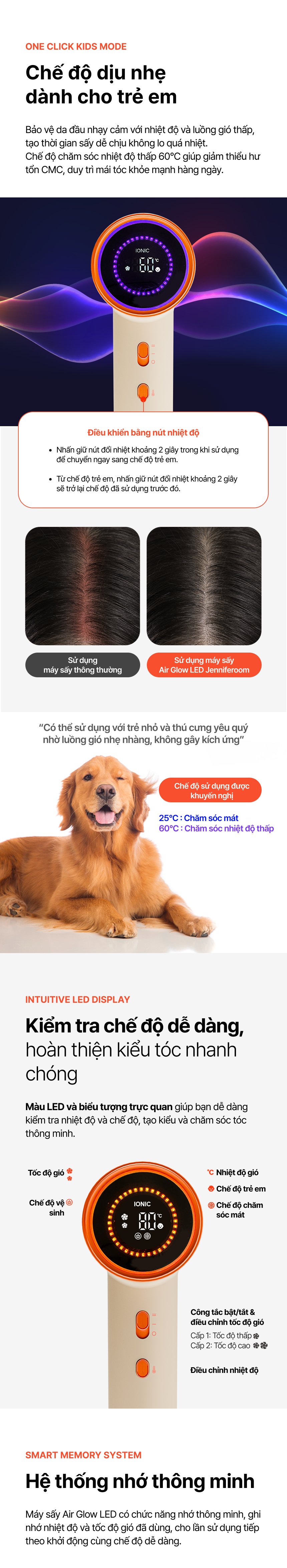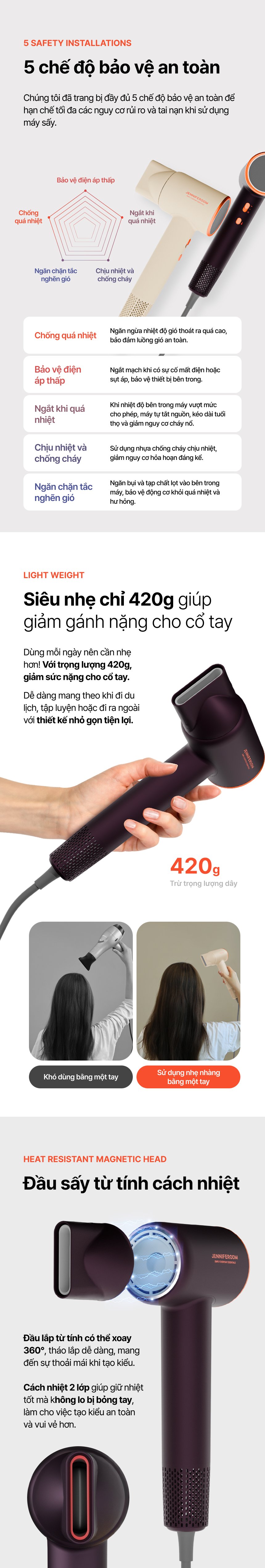 Máy sấy tóc Jenniferoom công suất 1450W, động cơ BLDC, công nghệ ion âm - 2 Màu - JRG-HD1502