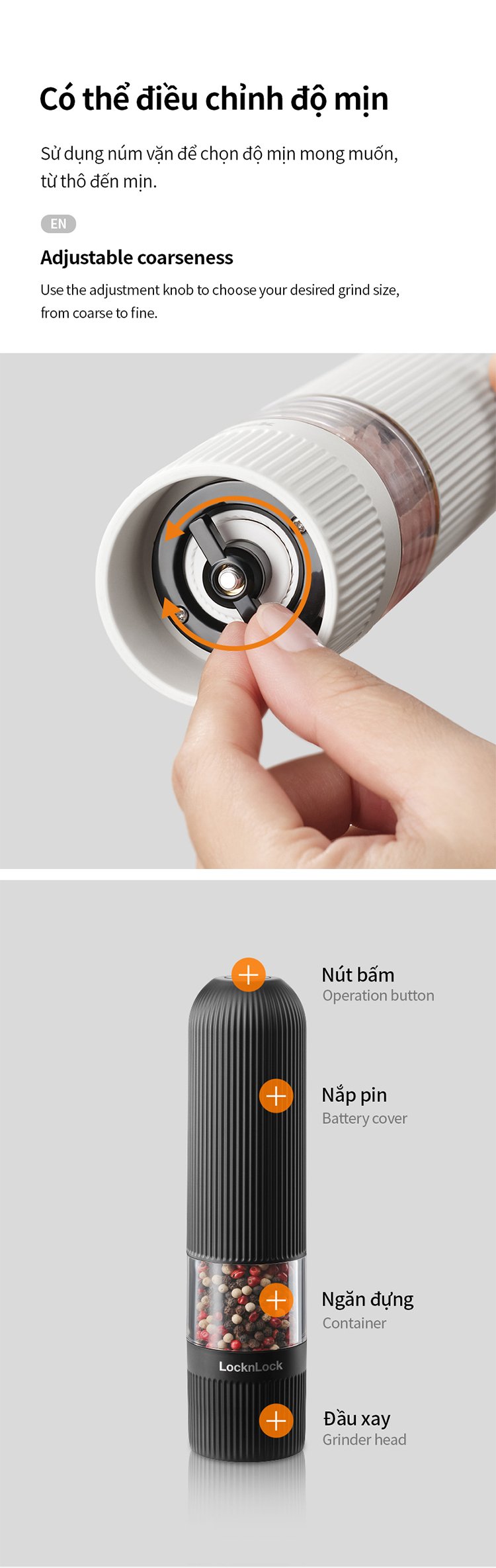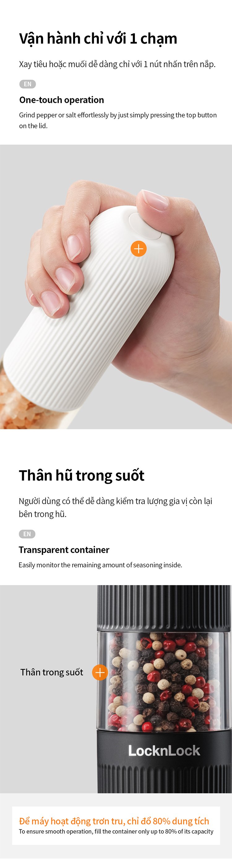 Máy xay muối và tiêu LocknLock một chạm 2 màu (Trắng, Đen) - CKO118