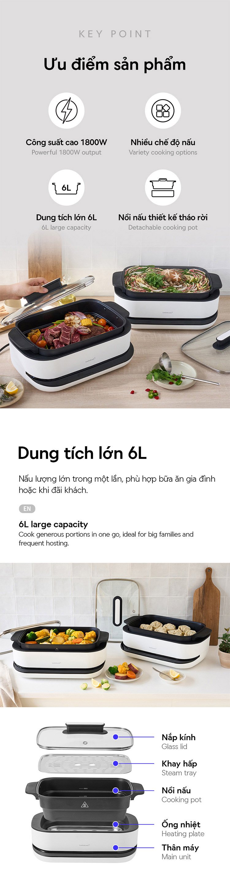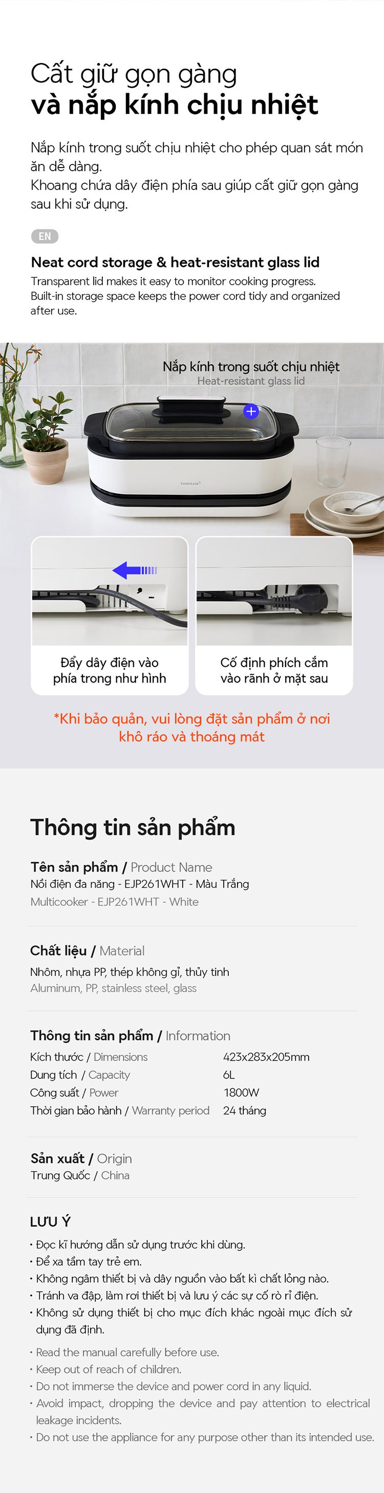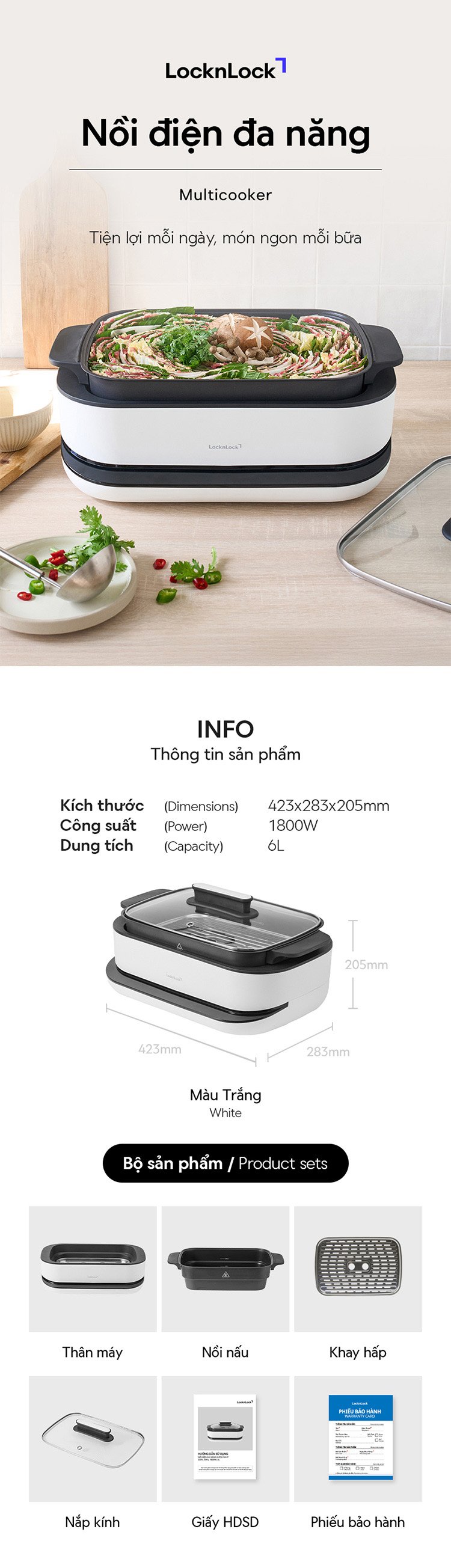 Nồi điện đa năng LocknLock dung tích 6L - Màu trắng - EJP261WHT