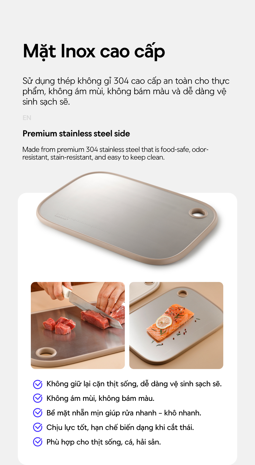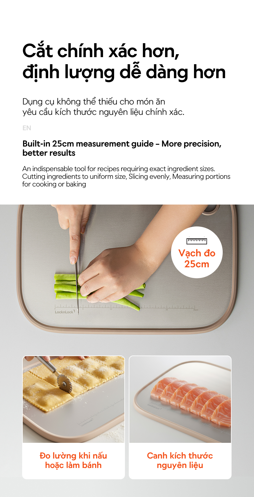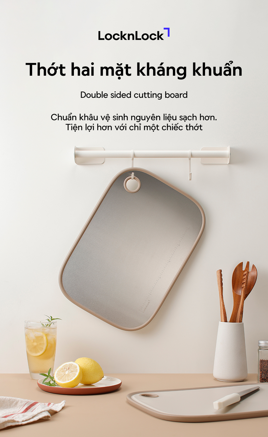 Thớt hai mặt inox 304, PP kháng khuẩn hiệu LocknLock kích thước 400*280*12MM - Màu Ivory - CKD096IVY