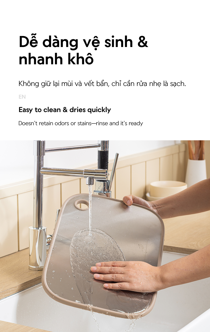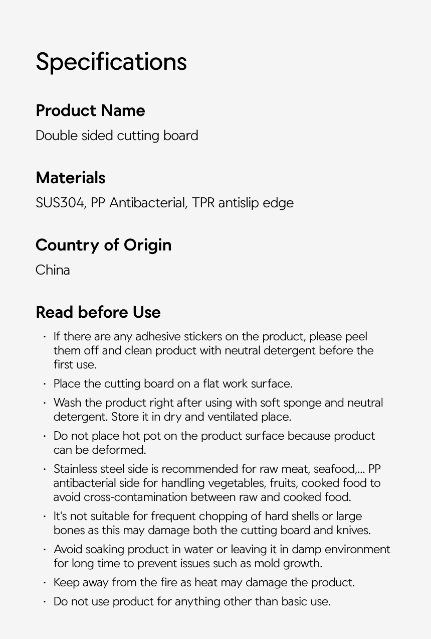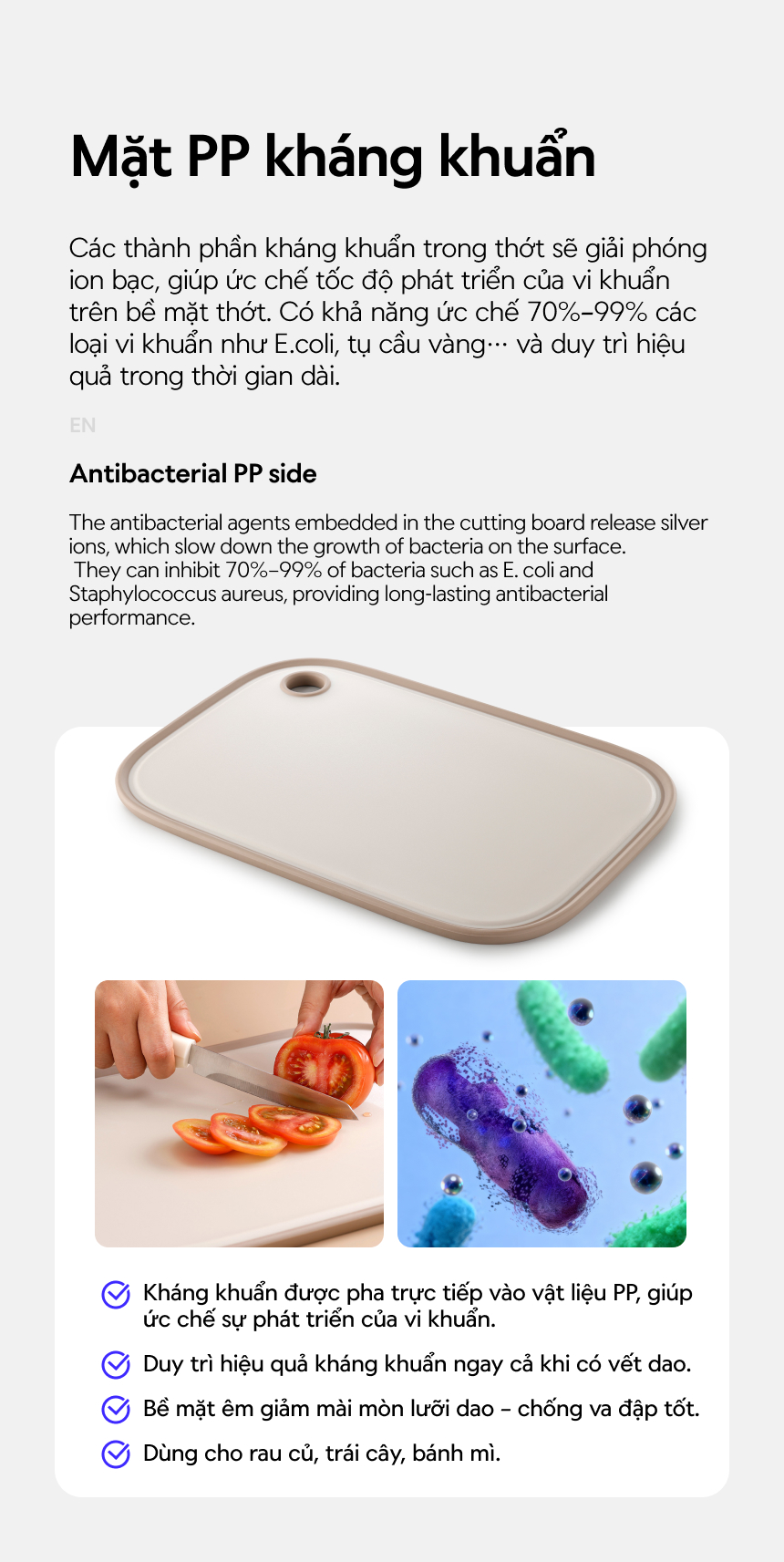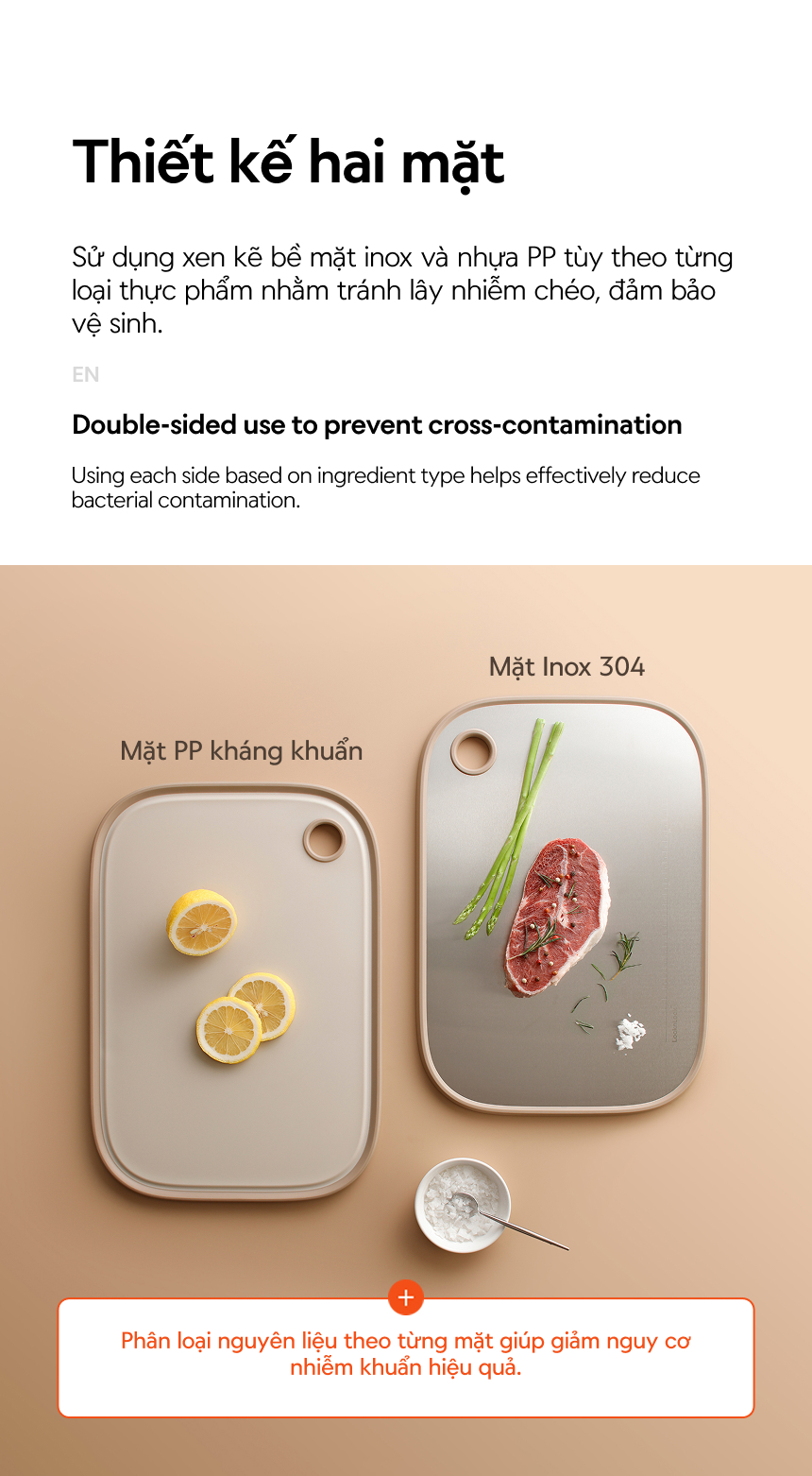 Thớt hai mặt inox 304, PP kháng khuẩn hiệu LocknLock kích thước 400*280*12MM - Màu Ivory - CKD096IVY