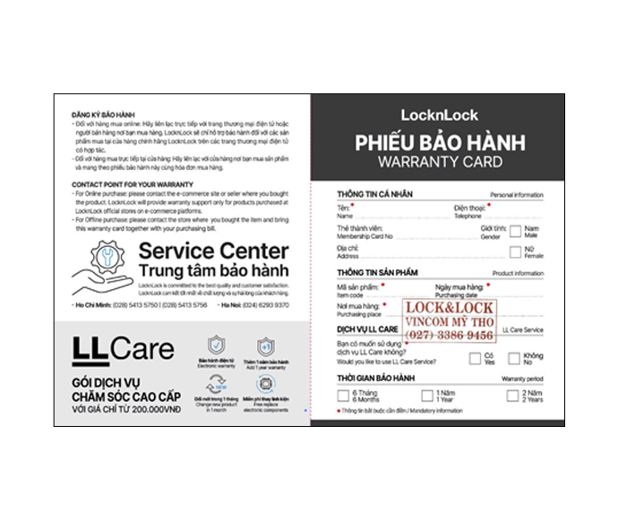 LocknLock Việt Nam xin chân thành cảm ơn Quý khách đã tin tưởng và lựa chọn sản phẩm của chúng tôi trong suốt thời gian qua. Để đảm bảo quyền lợi bảo hành chính hãng, chúng tôi xin thông báo: